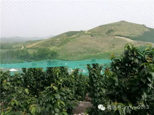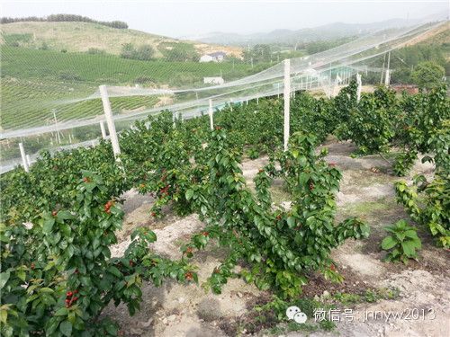 在经过一段蜿蜒山路后,一片布满防鸟网的山头赫然出现在我们眼前,煞是壮观,此时小小的草地上已经停满车辆。上前询问价钱后(价格有点小贵,不过在五一期间嘛,也可以接受),我们一行四人进入了这片樱桃圣地……