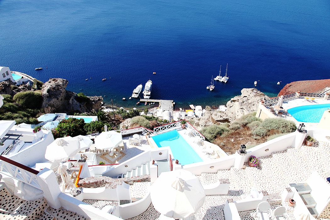 在这里,你可以作诗人,也可以作画家,彩绘出你心目中圣托里尼最蓝的天空。这里有典型的爱琴海风光:阳光、沙滩、大海、蓝天、白房子,是人们梦想中的蜜月度假胜地。