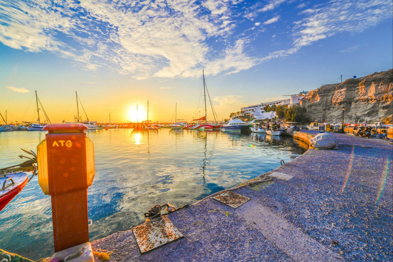 伊亚号称是最佳日落观赏地点,位于圣托里尼岛北面,从费拉可乘巴士直达,游人沿巴士站前的小街,往前走10分钟可到达悬崖的边沿,那里是看日落的最佳角度。